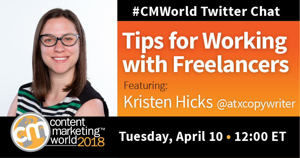 Chances are you were once a freelancer, are currently a freelancer, or have worked with one. They are often vital to our content creation. Yet, marketers still face several challenges with collaborating with them. If you do both well, you will likely be rewarded with quality work. To help us get the results we want from freelancers, we invited copywriter and content marketer Kristen Hicks to join our weekly #CMWorld Twitter chat. What follows are highlights from our discussion.